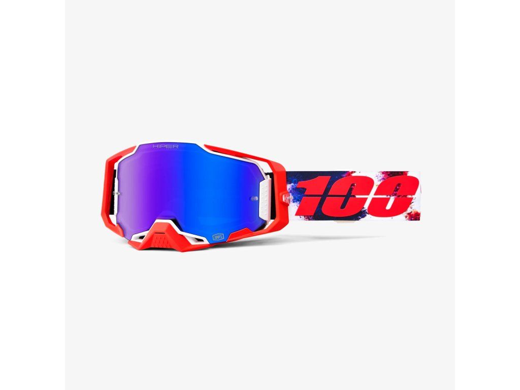 100% Okuliare Armega Hiper Morpho - Mirror Blue Lens - Modrá/Biela/Červená Sklo Modré