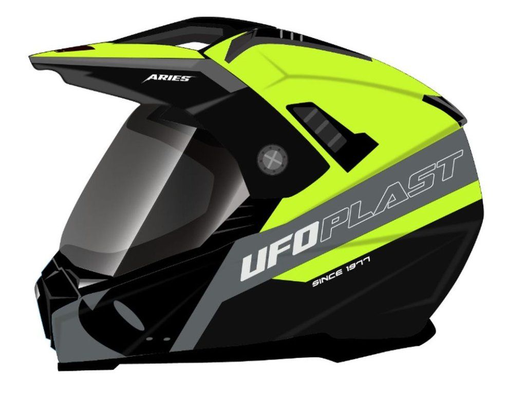 UFO Prilba Aries Offroad / Dual / Tourer / Crossover S Plexi, Šiltom A Slnečnou Clonou Čierna/Sivá/Žltá Fluo Veľkosť M - 2024